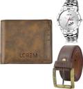 LOREM Belt, Wallet & Watch Combo (Brown, Brown, Silver)