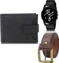 LOREM Belt, Wallet & Watch Combo  (Black, Brown, Black)