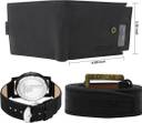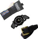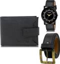 WATCH::-This Analog Watches comes with a Designer Look dial and stainless steel back. The dial is protected by a mineral glass and has a Designer strap for added comfort with Precious Finishing. The time is controlled by a single crown on the side of the watch. This watch is highly used for Sport plus Casual Wear. This watch is also highly recommended for new generation of india. This watches can be used for wedding, partywear, casual etc.WALLET::-7 ATM Cards Slot | 2 Cash Compartments | 2 Secret (Hidden) Pockets |1 Button Coin Box |Removable ATM Card Holder | Brand Logo embossed | Light Weight | Smooth Finish | Trendy |Latest Design | Leather Wallet For Men The few things you carry, carry well! Great for gift. Enjoy your life and Just put a bow on it and you're ready to give to your special one. Our wallet not only offers security, it's also very functional. It features a quick access to IDs, driver license, ATM debit cards / credit cards, and has two long top slots for money, receipts, or tickets. The few things you carry, carry well!BELT::-Presenting the New LOREM Belt collection for Men, We create value for money with latest trends, New Large range Best Qulity Zinc material Designer Buckle, Light Weight, Long-Lasting with Stitch Synthetic Leather Material. This High quality product and Synthetic leather promises you durability and light weight. One size fits all For waist 30 inches to 44 inches.