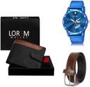 LOREM Belt, Wallet & Watch Combo  (Black, Brown, Blue)
