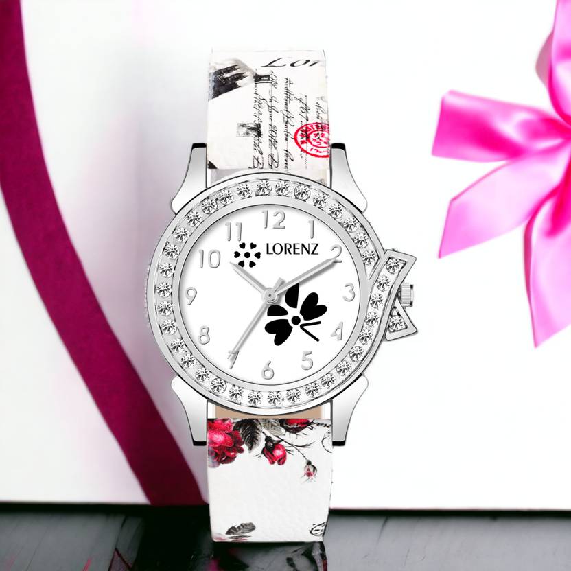 Lorenz AS-54A Flower Dial Printed Leather Strap Watch for Women|Watch for Girls