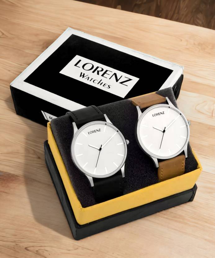 Attractive round dial couple watch combo by Lorenz. Lorenz introduces a unique range of stylish watches suiting any occasion one might think of. These are available in various designs to suit your style. This watch combo is meticulously designed for the impressive look which everyone loves to carry. Black round dials with all the calibrations and analogue display is enough to make the first impression. Elegant watchband and closure in the watches are equipped with a strap which not only adds substance to its looks but also lends durability to it, thus elongating its life. It comes along with a buckle clasp which ensures safety along with ease of usage. The movement mechanism which powers the watch is from Quartz which is a quite reliable name in the world of watches. It also helps add to the trust factor when the durability of the watches is put to question.