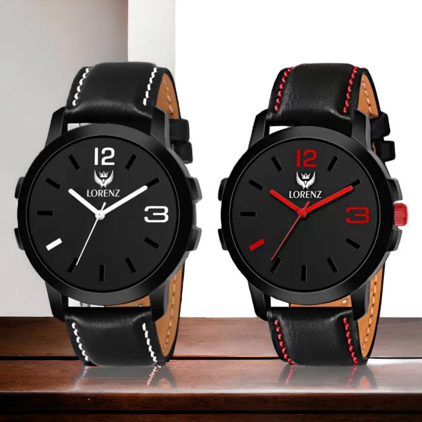 Attractive round dial couple watch combo by Lorenz. Lorenz introduces a unique range of stylish watches suiting any occasion one might think of. These are available in various designs to suit your style. This watch combo is meticulously designed for the impressive look which everyone loves to carry. Black round dials with all the calibrations and analogue display is enough to make the first impression. Elegant watchband and closure in the watches are equipped with a strap which not only adds substance to its looks but also lends durability to it, thus elongating its life. It comes along with a buckle clasp which ensures safety along with ease of usage. The movement mechanism which powers the watch is from Quartz which is a quite reliable name in the world of watches. It also helps add to the trust factor when the durability of the watches is put to question.