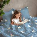 LORETO Cotton Double Flat 144 TC Printed Bedsheet (Pack of 1, Pastel Blue Duck Party)