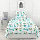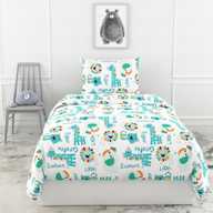 LORETO Cotton Single Flat 144 TC Printed Bedsheet (Pack of 1, Aqua & Rainbow Animal Parade)