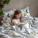 LORETO Cotton Single Flat 144 TC Printed Bedsheet (Pack of 1, Deep Blue & Olive Abstract Waves)