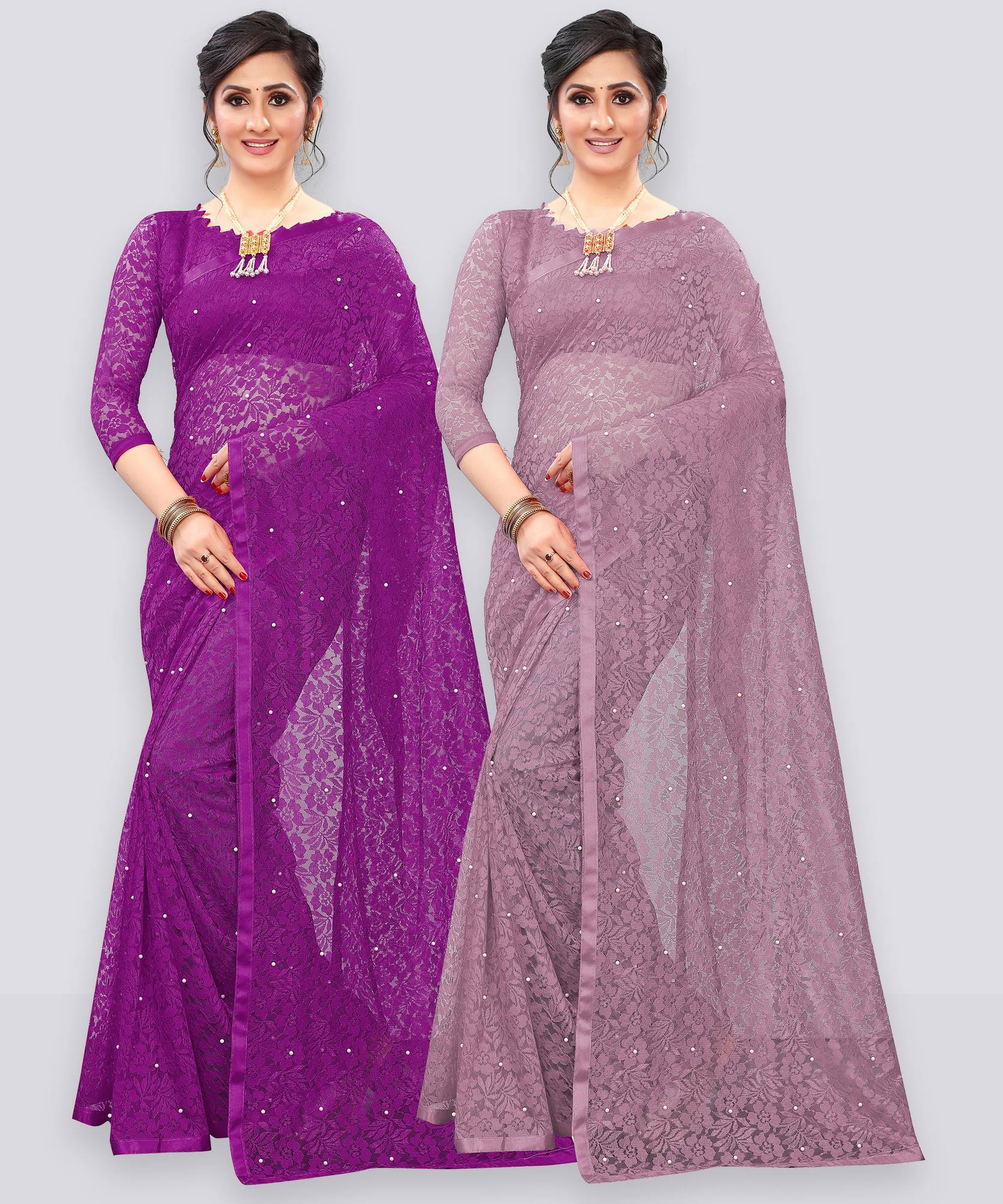 In Packet Contains Pack Of 2 Saree As Mentioned Colors With 2 Blouse Piace