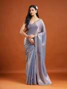 Soft Dual Tone Fendy Chiffon Saree Saree Size 5.5M Blouse 0.8M With Golden Beads And Stone Less Border