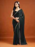 Online Bazaaar Embroidered Bollywood Chiffon, Pure Silk Saree (Green)