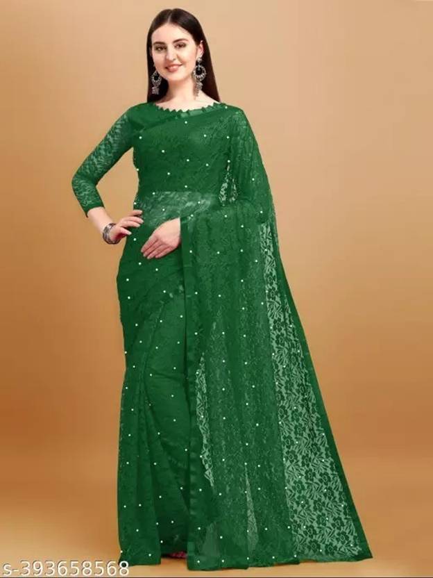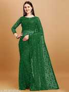 Embellished Daily Wear Net Saree (Green)