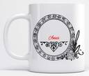 LOROFY Name Anais Printed Black Floral Design White Ceramic Coffee Mug