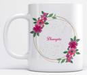 LOROFY Name Dhanyata Printed Pink & Green Floral Design White Ceramic Coffee Mug  (350 ml)