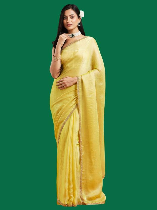 LOROFY Unstitched Organza Blouse Material Solid