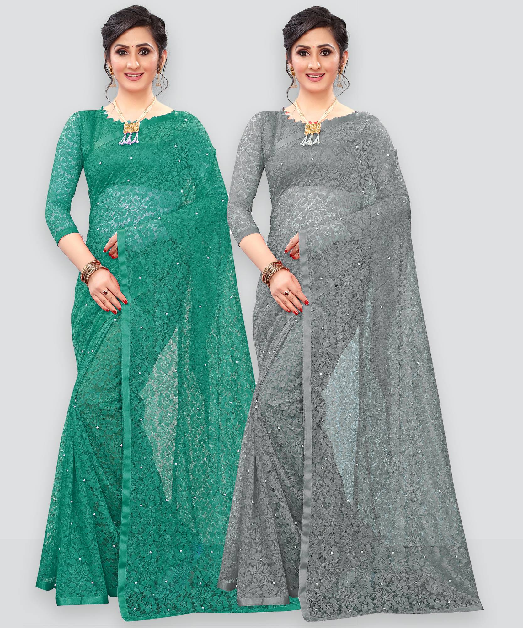 In Packet Contains Pack Of 2 Saree As Mentioned Colors With 2 Blouse Piace