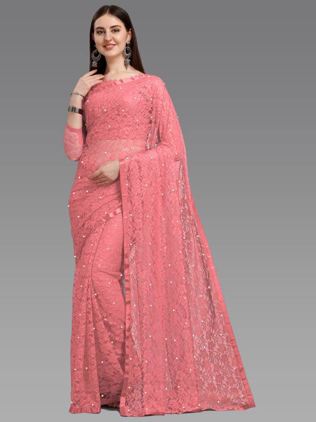 LOROFY Self Design Bollywood Net Saree  (Multicolor)