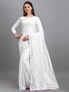 We bring Designer Jacquard Net Saree For Our Lovely Customers This Saree Made By High Export Quality Of Materials Saree Cloth Made By Soft Quality Cotton Materials Bringing Designer Machine Work Like Different Type Of Flowers On Saree With White Color Of Stone Work Saree 5.5 Meter With Complete Less Border Blouse 0.8 Meter Customers Can Stitched As Own Test With Pattern Give you perfect festival look in all the season and party