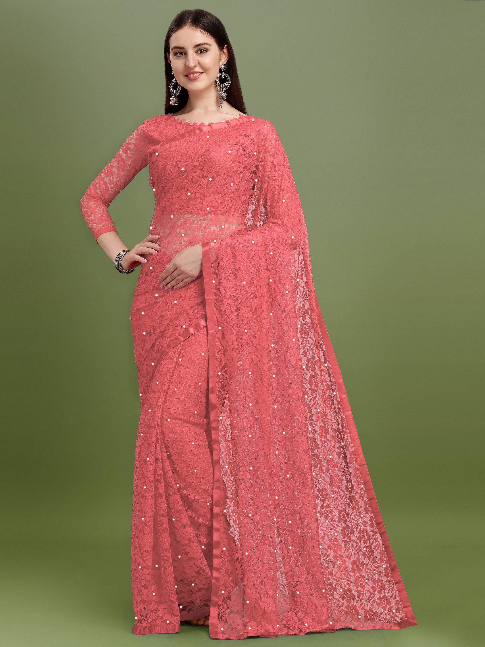 We bring Designer Jacquard Net Saree For Our Lovely Customers This Saree Made By High Export Quality Of Materials Saree Cloth Made By Soft Quality Cotton Materials Bringing Designer Machine Work Like Different Type Of Flowers On Saree With White Color Of Stone Work Saree 5.5 Meter With Complete Less Border Blouse 0.8 Meter Customers Can Stitched As Own Test With Pattern Give you perfect festival look in all the season and party