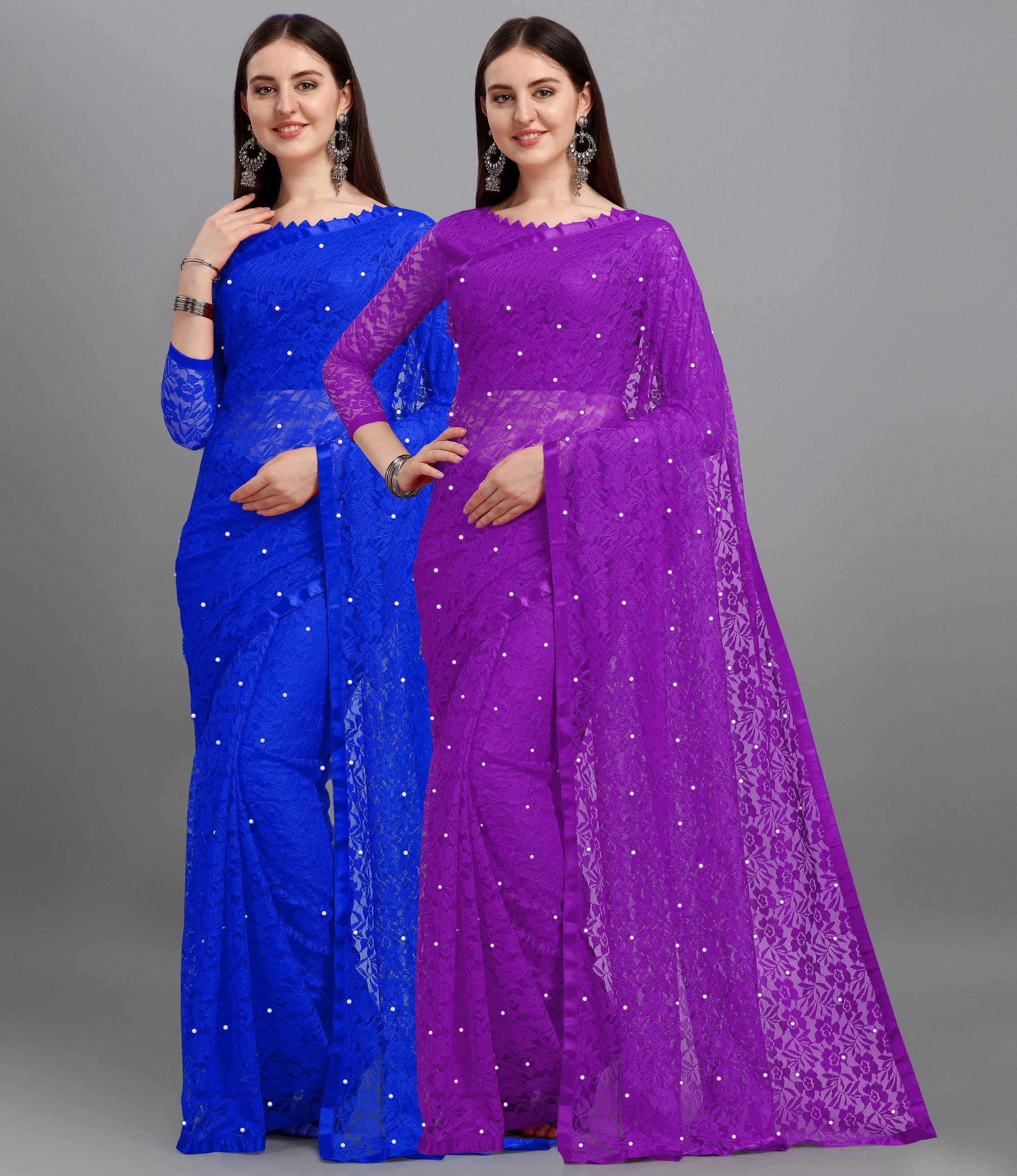 In Packet Contains Pack Of 2 Saree As Mentioned Colors With 2 Blouse Piace