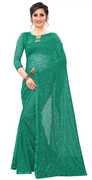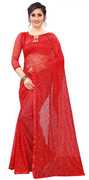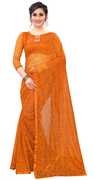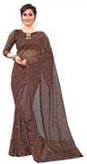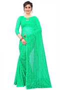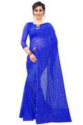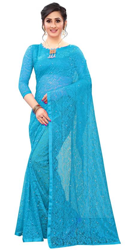 CARRYOX Embellished Bollywood Net, Brasso Saree (Light Blue)