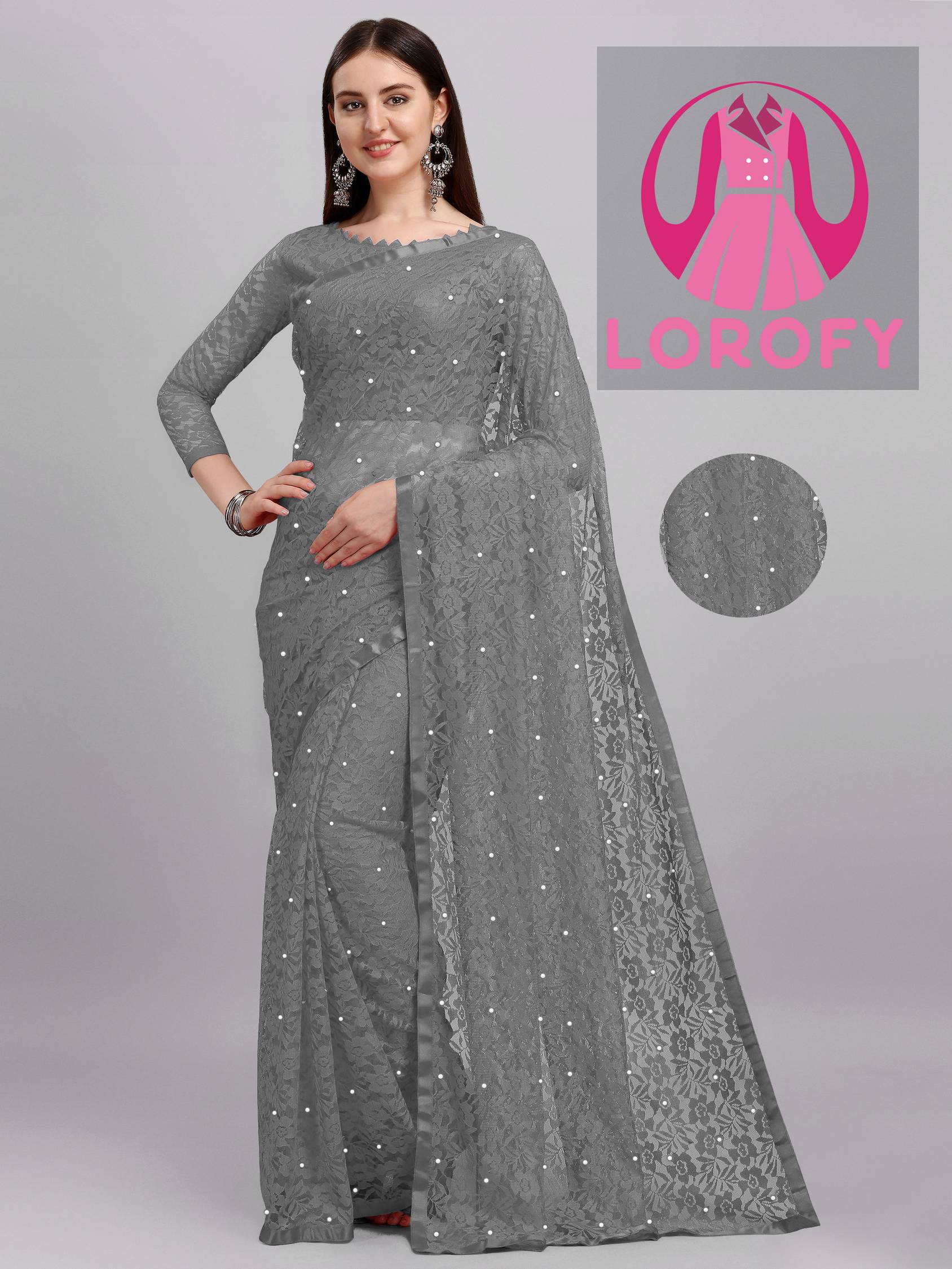 LOROFY Self Design Bollywood Net Saree (Multicolor)