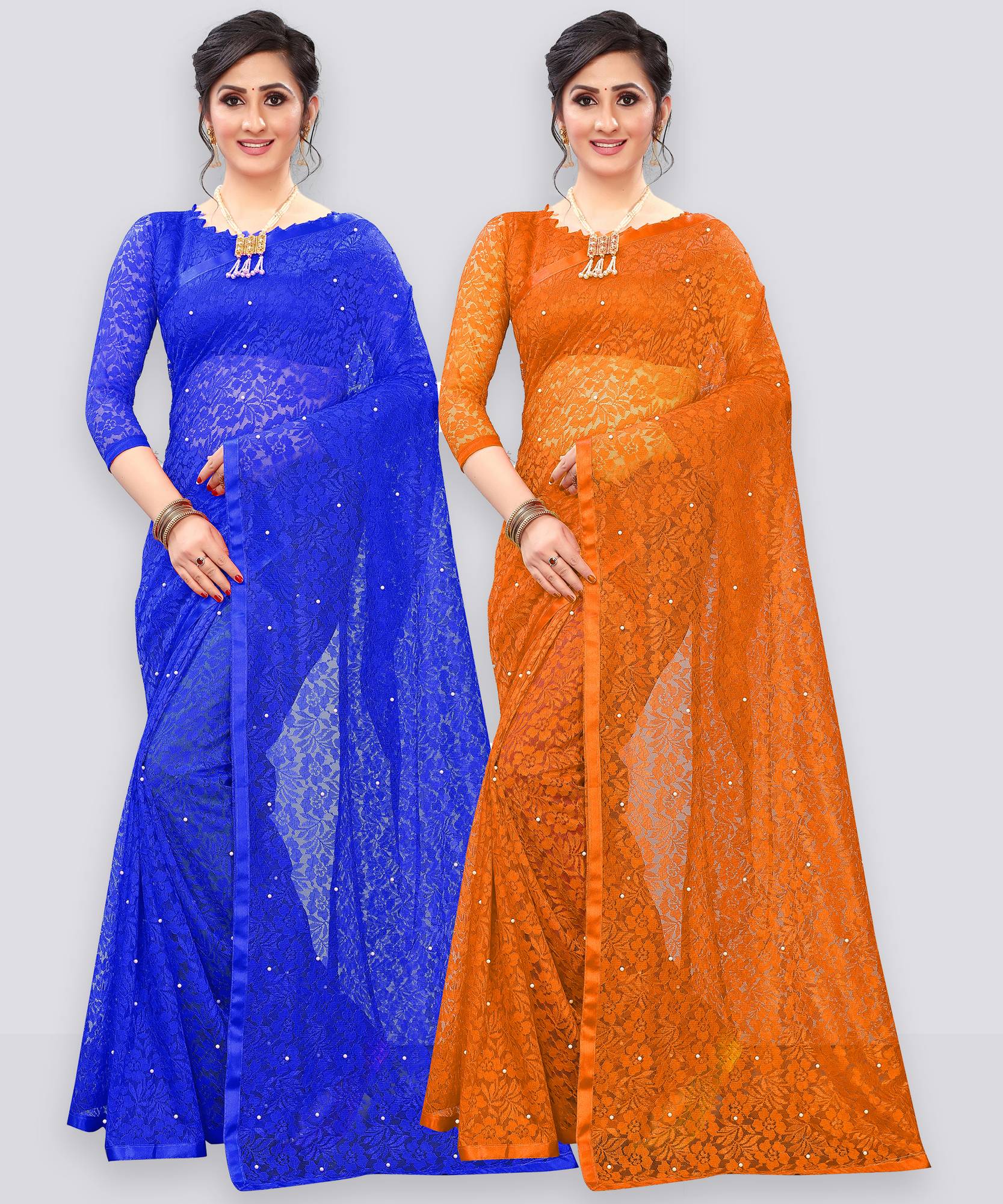 In Packet Contains Pack Of 2 Saree As Mentioned Colors With 2 Blouse Piace