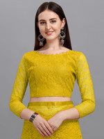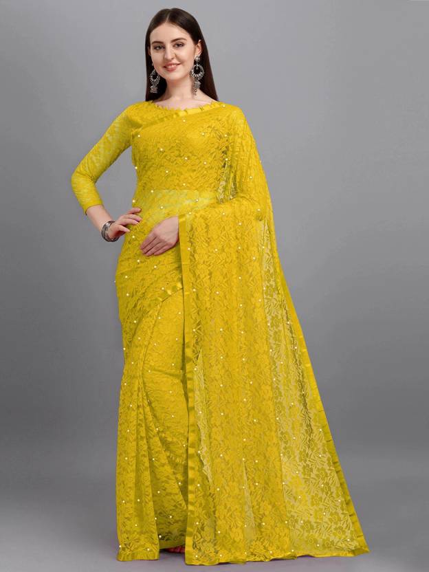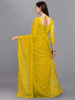 LOROFY Self Design Bollywood Net Saree (Yellow)