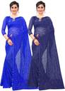 LOROFY Self Design Bollywood Net Saree  (Pack of 2, Dark Blue, Blue)