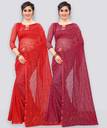LOROFY Self Design Bollywood Net Saree (Pack of 2, Red, Maroon)