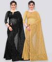 LOROFY Self Design Bollywood Net Saree (Pack of 2, Black, Beige)