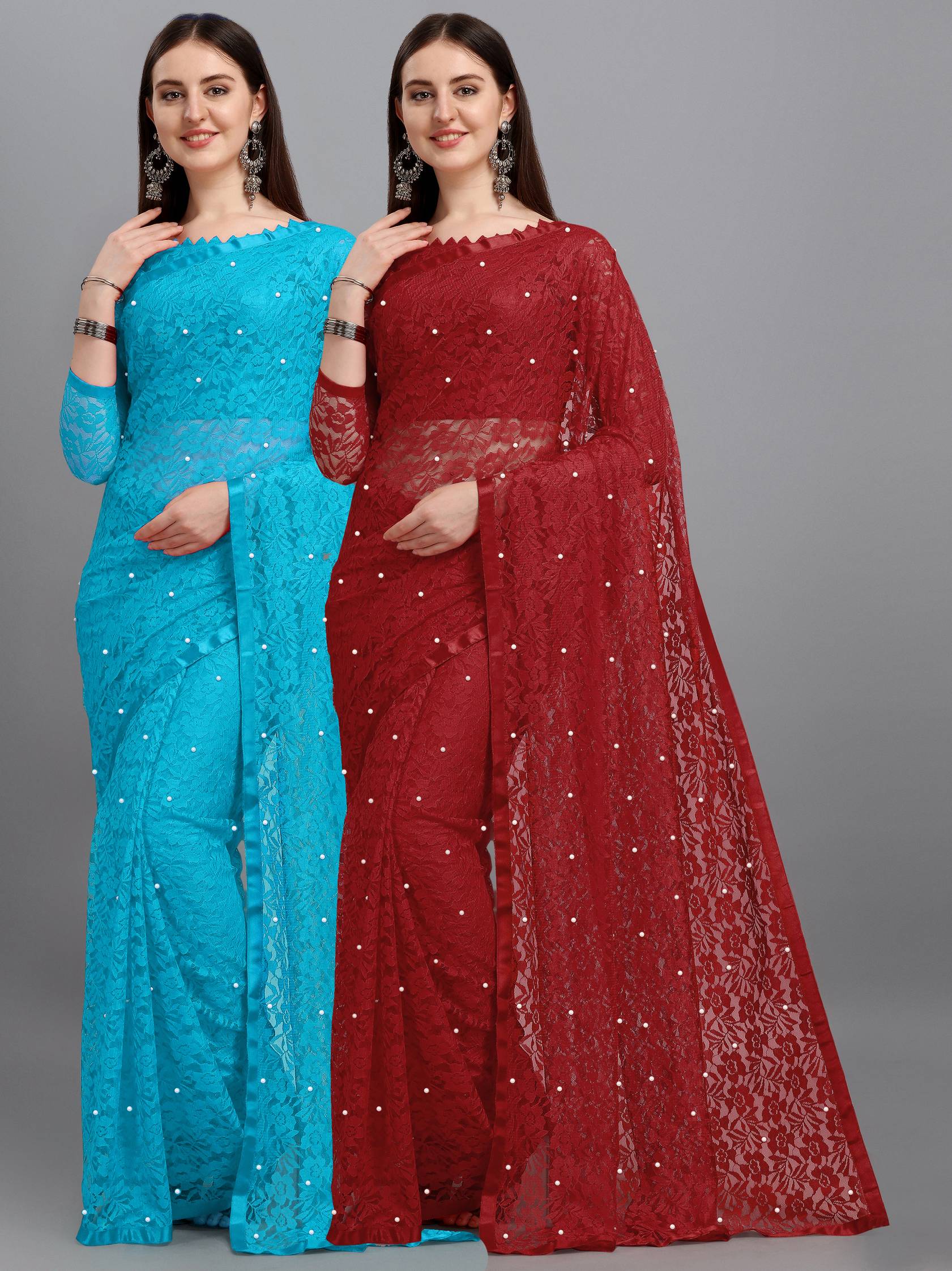 In Packet Contains Pack Of 2 Saree As Mentioned Colors With 2 Blouse Piace We bring Designer Jacquard Net Saree For Our Lovely Customers This Saree Made By High Export Quality Of Materials Saree Cloth Made By Soft Quality Cotton Materials Bringing Designer Machine Work Like Different Type Of Flowers On Saree With White Color Of Stone Work Saree 5.5 Meter With Complete Less Border Blouse 0.8 Meter Customers Can Stitched As Own Test With Pattern Give you perfect festival look in all the season and party