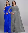 LOROFY Self Design Bollywood Net Saree  (Pack of 2, Blue, Grey)