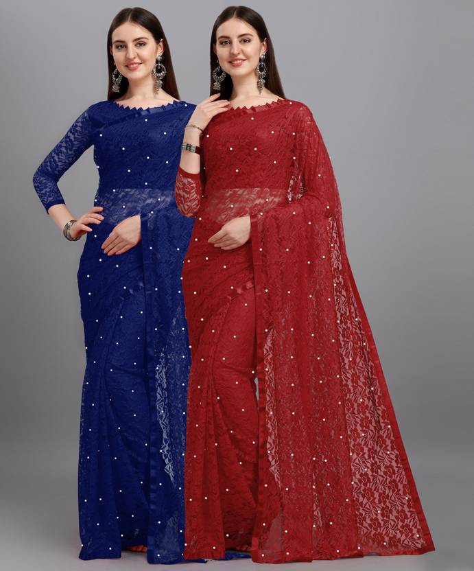 LOROFY Self Design Bollywood Net Saree  (Pack of 2, Multicolor)