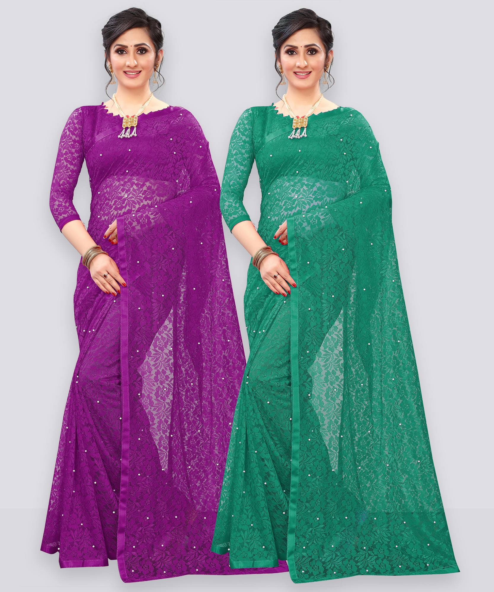 In Packet Contains Pack Of 2 Saree As Mentioned Colors With 2 Blouse Piace