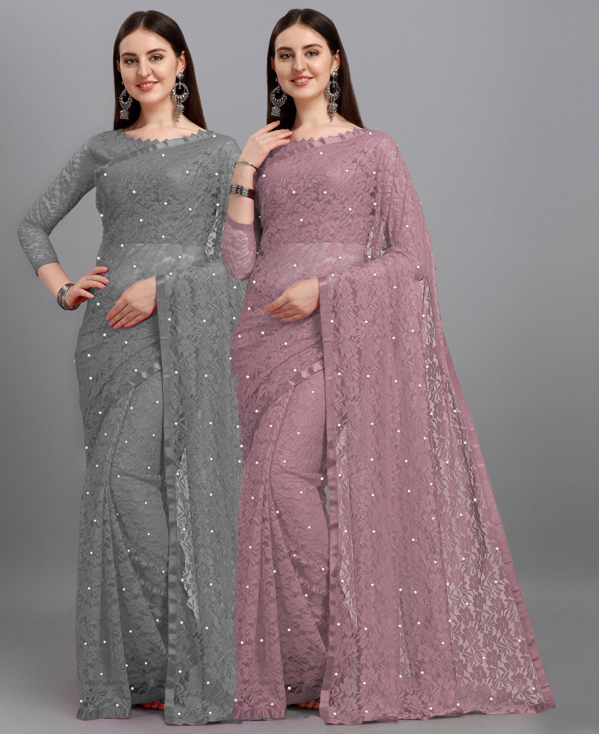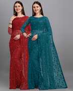 In Packet Contains Pack Of 2 Saree As Mentioned Colors With 2 Blouse Piace We bring Designer Jacquard Net Saree For Our Lovely Customers This Saree Made By High Export Quality Of Materials Saree Cloth Made By Soft Quality Cotton Materials Bringing Designer Machine Work Like Different Type Of Flowers On Saree With White Color Of Stone Work Saree 5.5 Meter With Complete Less Border Blouse 0.8 Meter Customers Can Stitched As Own Test With Pattern Give you perfect festival look in all the season and party