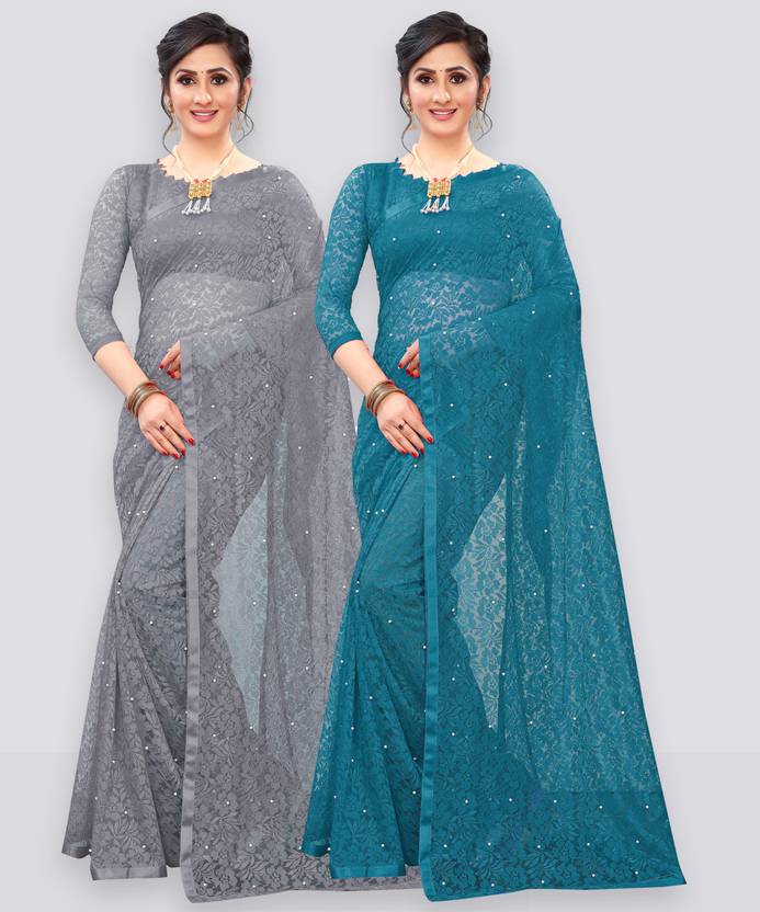 LOROFY Self Design Bollywood Net Saree  (Pack of 2, Grey)