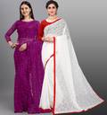 LOROFY Self Design Bollywood Net Saree  (Pack of 2, Multicolor)