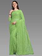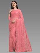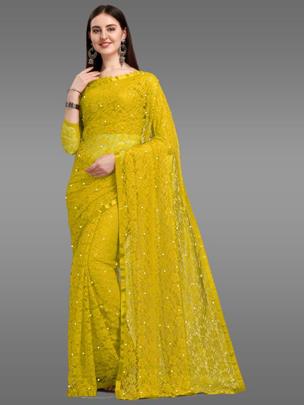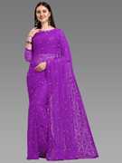 LOROFY Self Design Bollywood Net Saree (Multicolor)