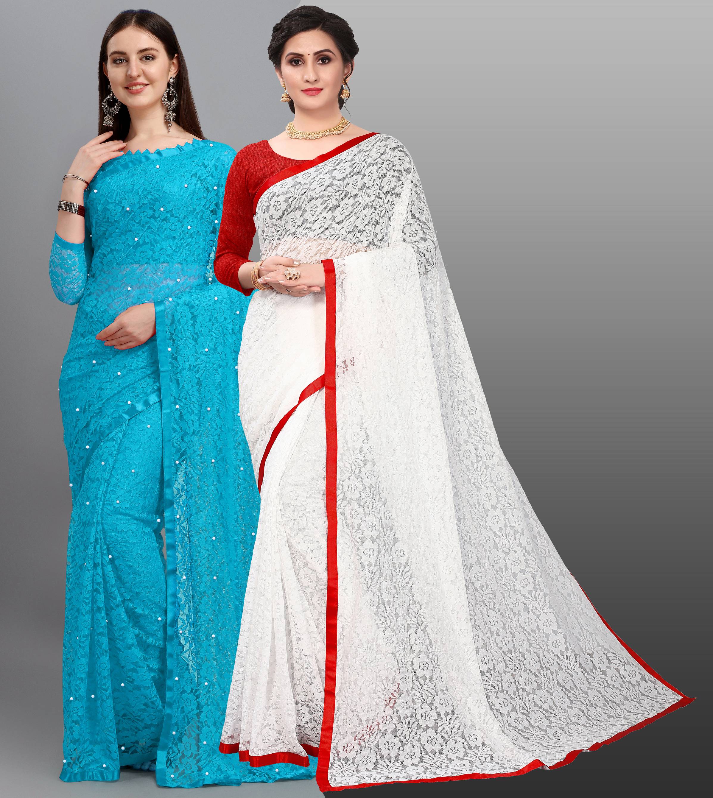 In Packet Contains Pack Of 2 Saree As Mentioned Colors With 2 Blouse Piace We bring Designer Jacquard Net Saree For Our Lovely Customers This Saree Made By High Export Quality Of Materials Saree Cloth Made By Soft Quality Cotton Materials Bringing Designer Machine Work Like Different Type Of Flowers On Saree With White Color Of Stone Work Saree 5.5 Meter With Complete Less Border Blouse 0.8 Meter Customers Can Stitched As Own Test With Pattern Give you perfect festival look in all the season and party