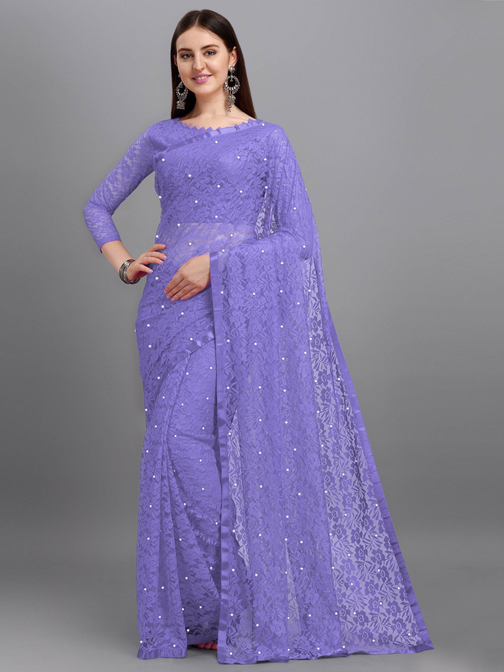 This saree is made of Brasso net, which is a jacquard weave polyamide fabric. Its semi-opaque feature brings out the best style in you. This saree is decorated with white beads, which can look stunning in any colour. The beads are tailored in the saree using a machine, so you don't need to worry about the beads falling off. Look your absolute best by pairing this saree with your favourite accessories and feel selfie-ready in no time.