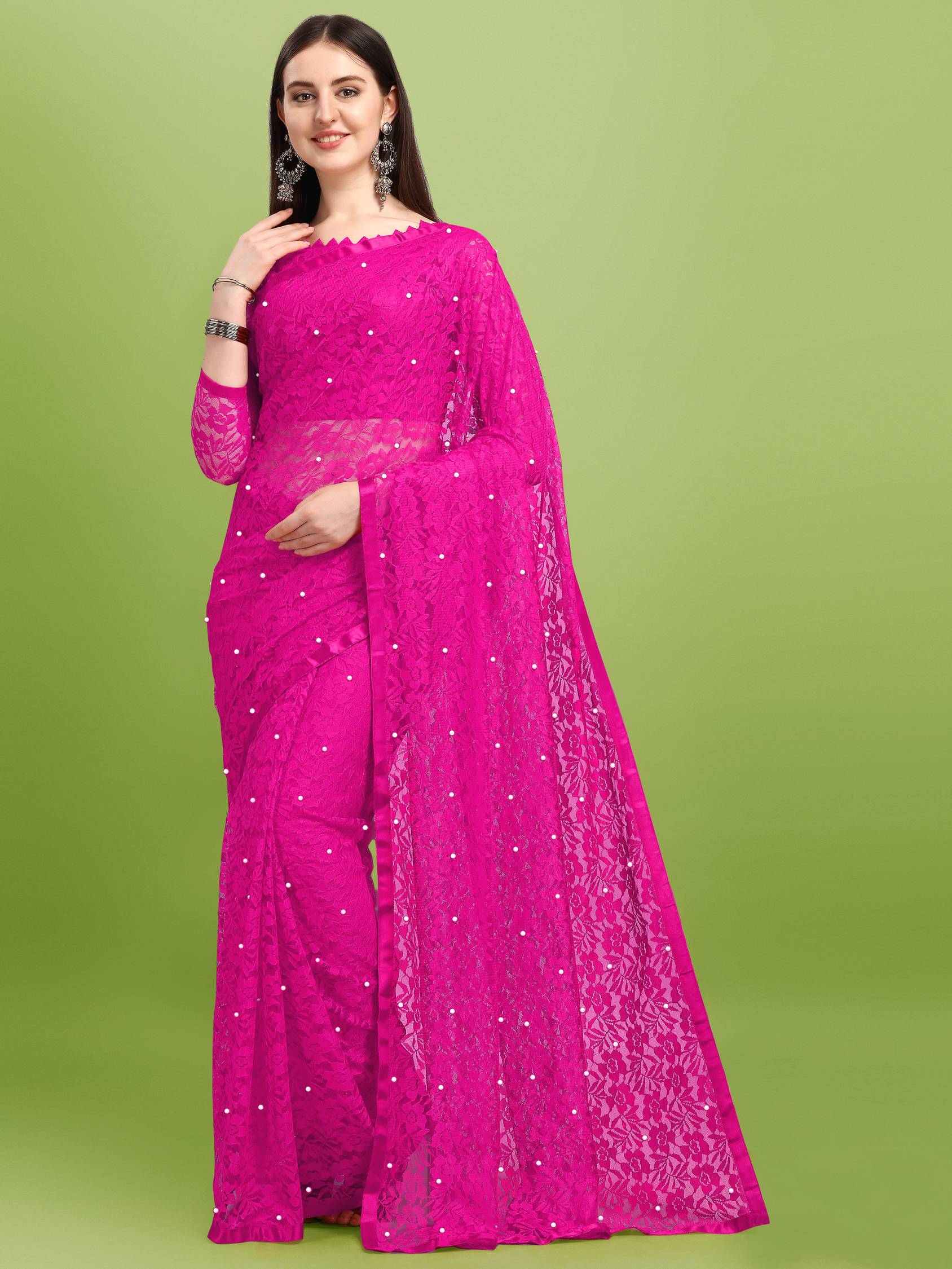 We bring Designer Jacquard Net Saree For Our Lovely Customers This Saree Made By High Export Quality Of Materials Saree Cloth Made By Soft Quality Cotton Materials Bringing Designer Machine Work Like Different Type Of Flowers On Saree With White Color Of Stone Work Saree 5.5 Meter With Complete Less Border Blouse 0.8 Meter Customers Can Stitched As Own Test With Pattern Give you perfect festival look in all the season and party