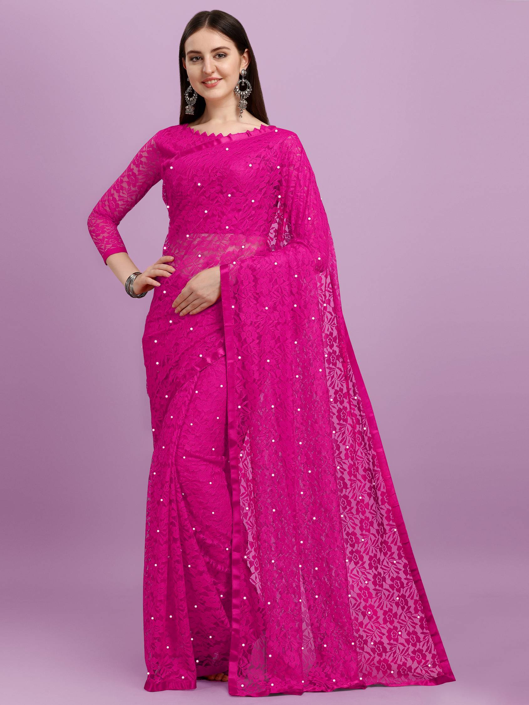 We bring Designer Jacquard Net Saree For Our Lovely Customers This Saree Made By High Export Quality Of Materials Saree Cloth Made By Soft Quality Cotton Materials Bringing Designer Machine Work Like Different Type Of Flowers On Saree With White Color Of Stone Work Saree 5.5 Meter With Complete Less Border Blouse 0.8 Meter Customers Can Stitched As Own Test With Pattern Give you perfect festival look in all the season and party