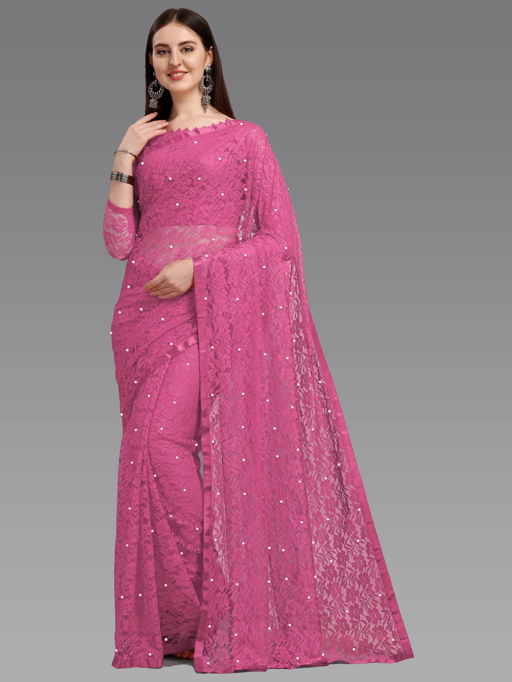 LOROFY Self Design Bollywood Net Saree  (Multicolor)