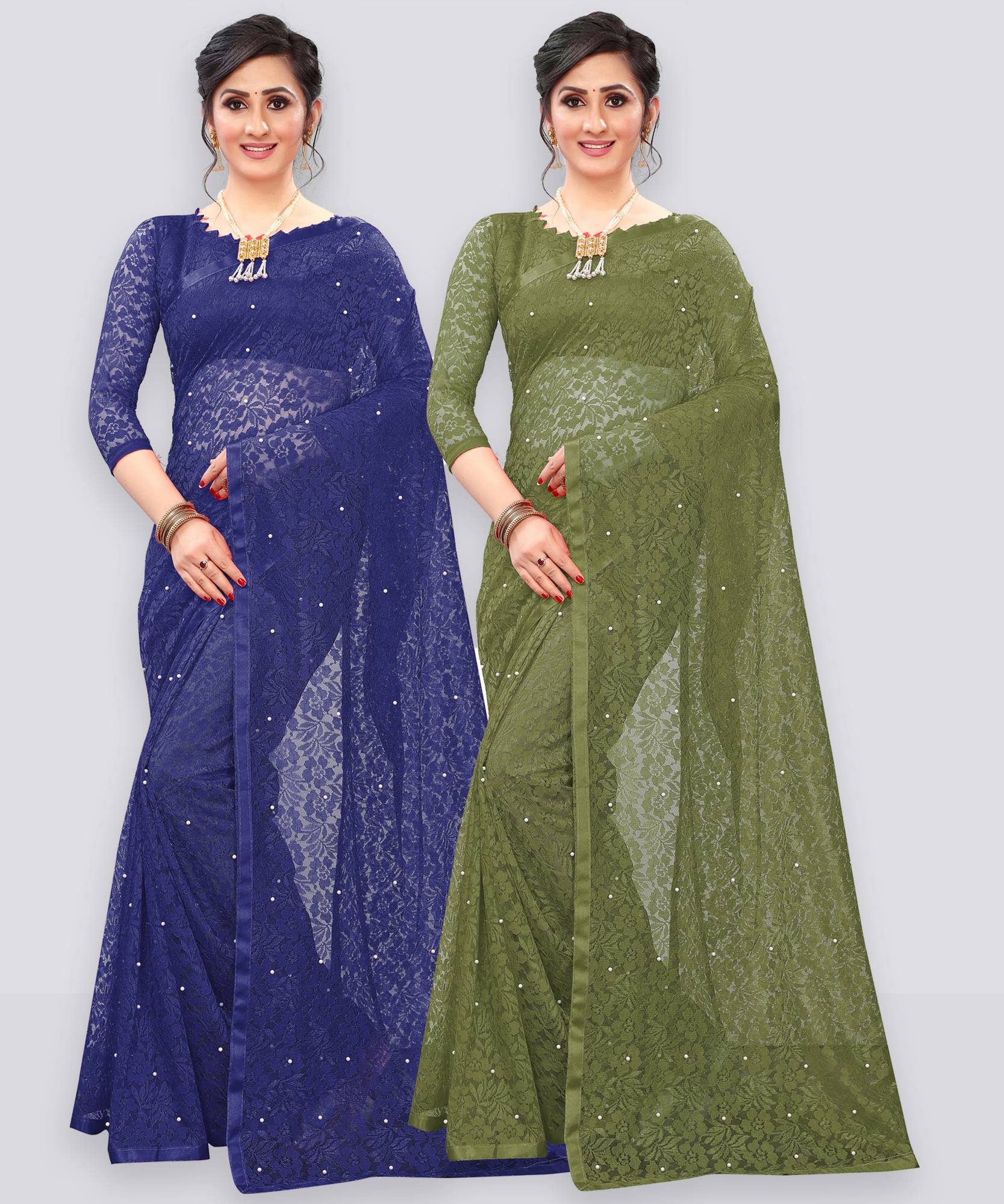LOROFY Self Design Bollywood Net Saree  (Pack of 2, Multicolor)