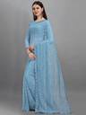The saree comes with a matching, unstitched blouse piece to complete the look. With an embroidered pattern, the blouse can be tailored according to your desired design and fit. You can ignore stitching with lining material for the sleeves, which can give you a trendy design. Pair this outfit with contrasting accessories to look stylish and chic.