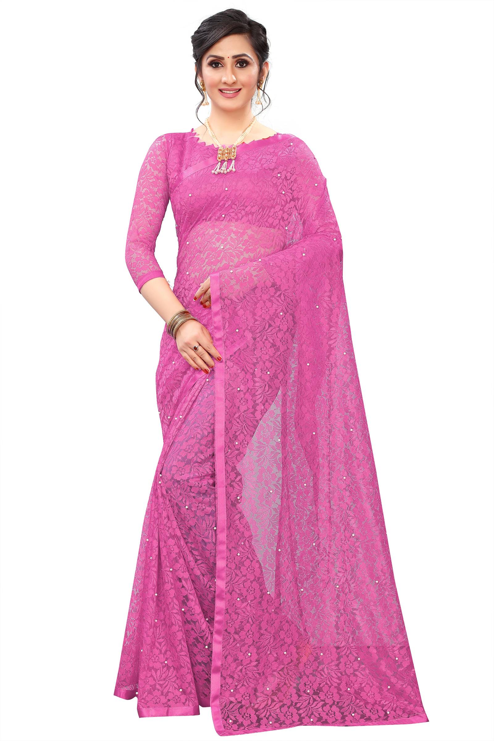 We bring Designer Jacquard Net Saree For Our Lovely Customers This Saree Made By High Export Quality Of Materials Saree Cloth Made By Soft Quality Cotton Materials Bringing Designer Machine Work Like Different Type Of Flowers On Saree With White Color Of Stone Work Saree 5.5 Meter With Complete Less Border Blouse 0.8 Meter Customers Can Stitched As Own Test With Pattern Give you perfect festival look in all the season and party