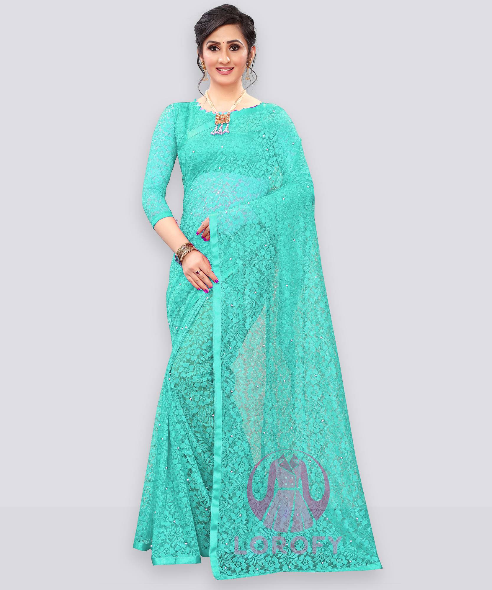 LOROFY Self Design Bollywood Net Saree (Multicolor)