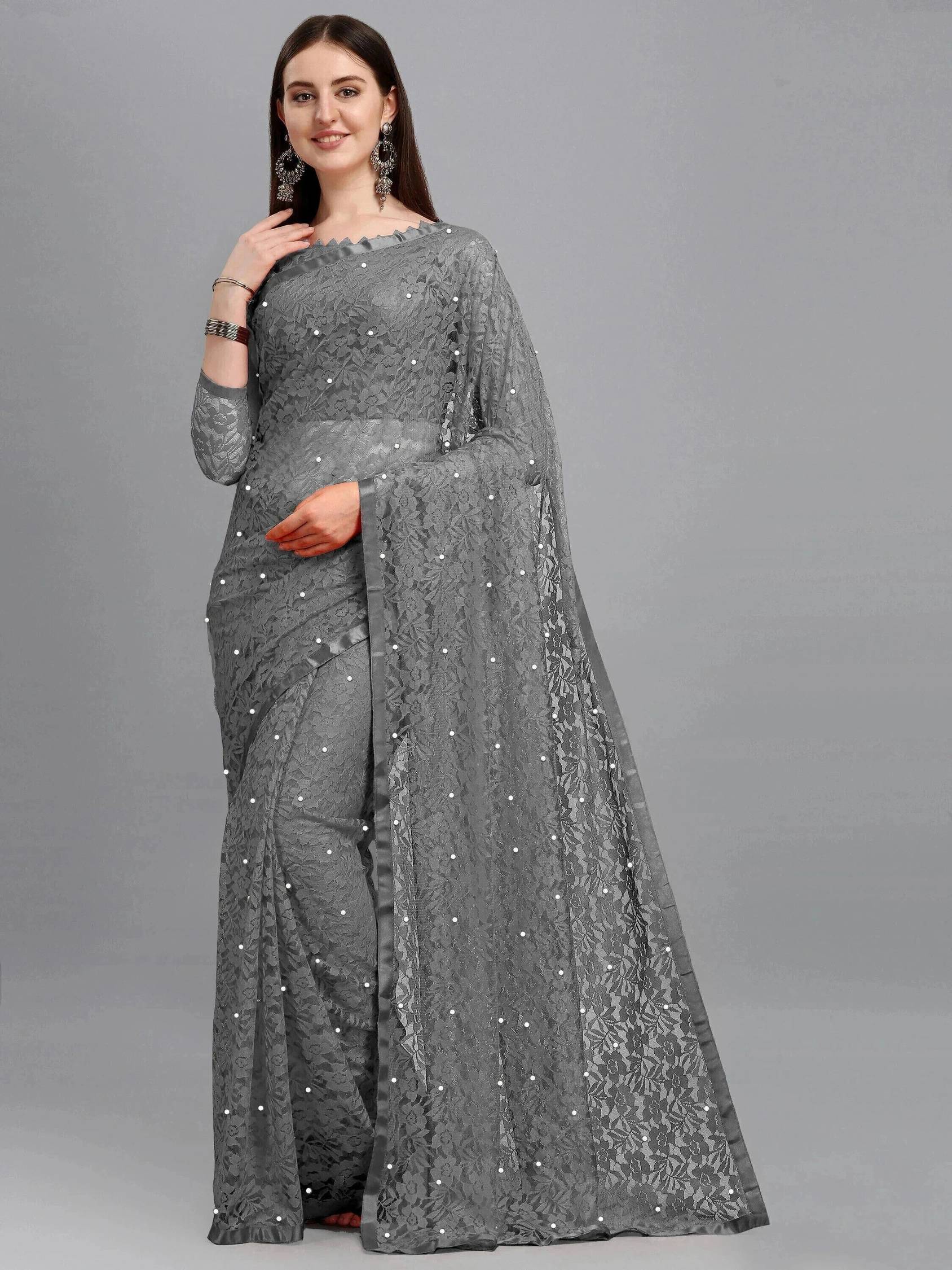 We bring Designer Jacquard Net Saree For Our Lovely Customers This Saree Made By High Export Quality Of Materials Saree Cloth Made By Soft Quality Cotton Materials Bringing Designer Machine Work Like Different Type Of Flowers On Saree With White Color Of Stone Work Saree 5.5 Meter With Complete Less Border Blouse 0.8 Meter Customers Can Stitched As Own Test With Pattern Give you perfect festival look in all the season and party