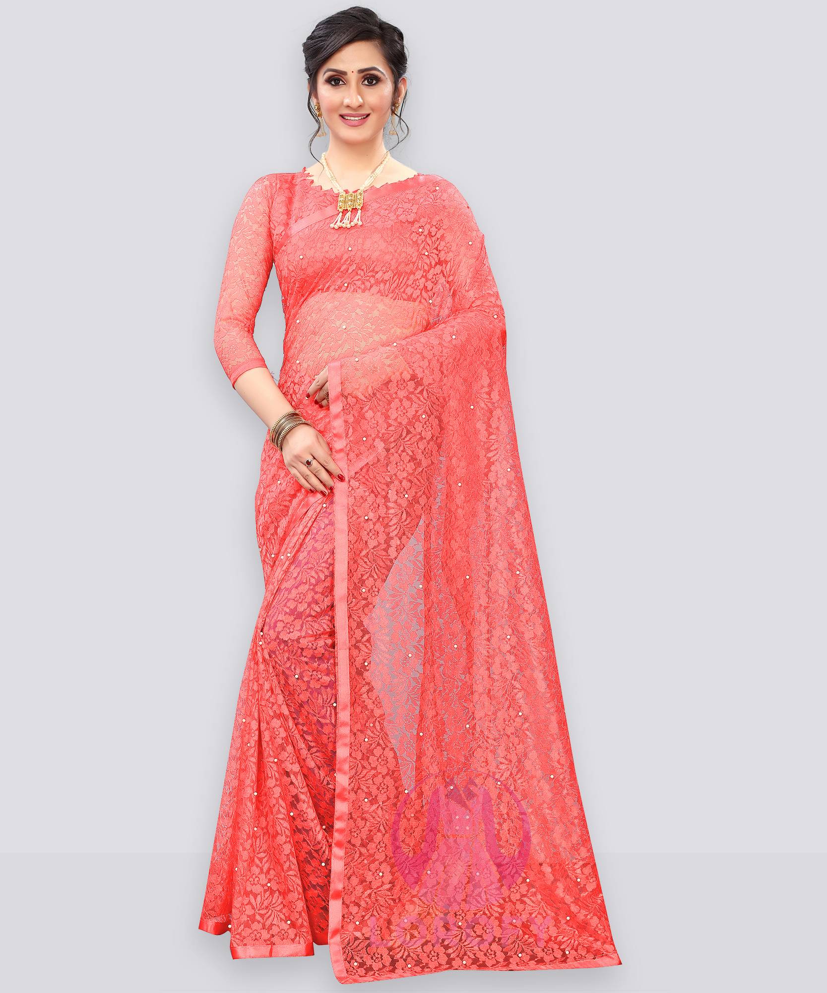 LOROFY Self Design Bollywood Net Saree (Multicolor)