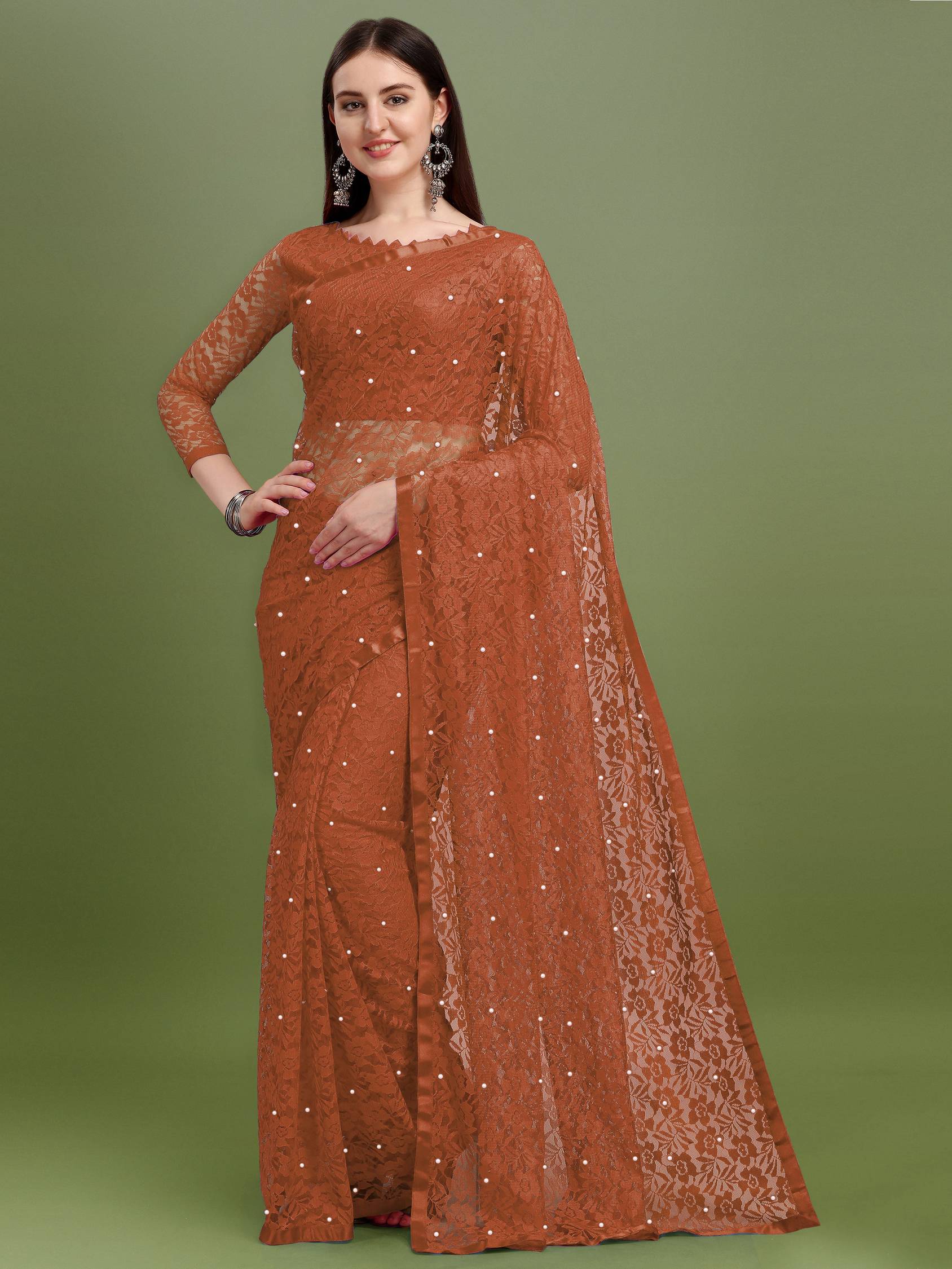 We bring Designer Jacquard Net Saree For Our Lovely Customers This Saree Made By High Export Quality Of Materials Saree Cloth Made By Soft Quality Cotton Materials Bringing Designer Machine Work Like Different Type Of Flowers On Saree With White Color Of Stone Work Saree 5.5 Meter With Complete Less Border Blouse 0.8 Meter Customers Can Stitched As Own Test With Pattern Give you perfect festival look in all the season and party