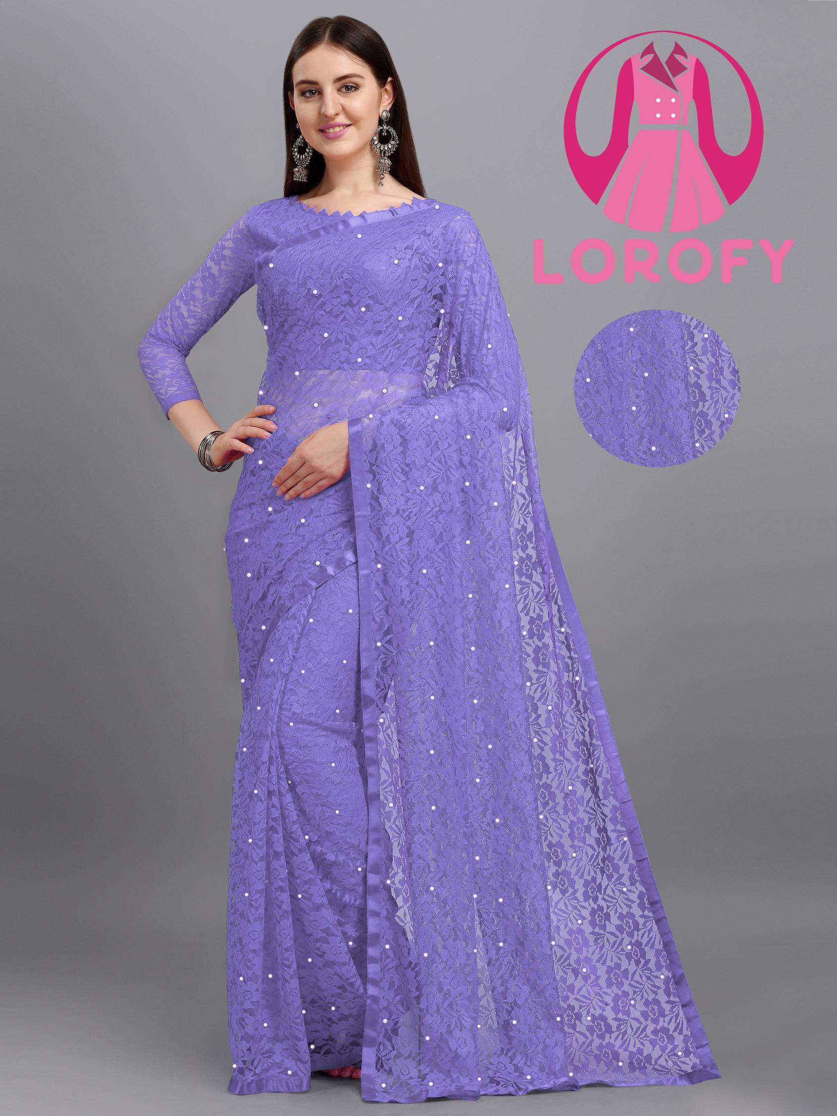 LOROFY Self Design Bollywood Net Saree (Multicolor)